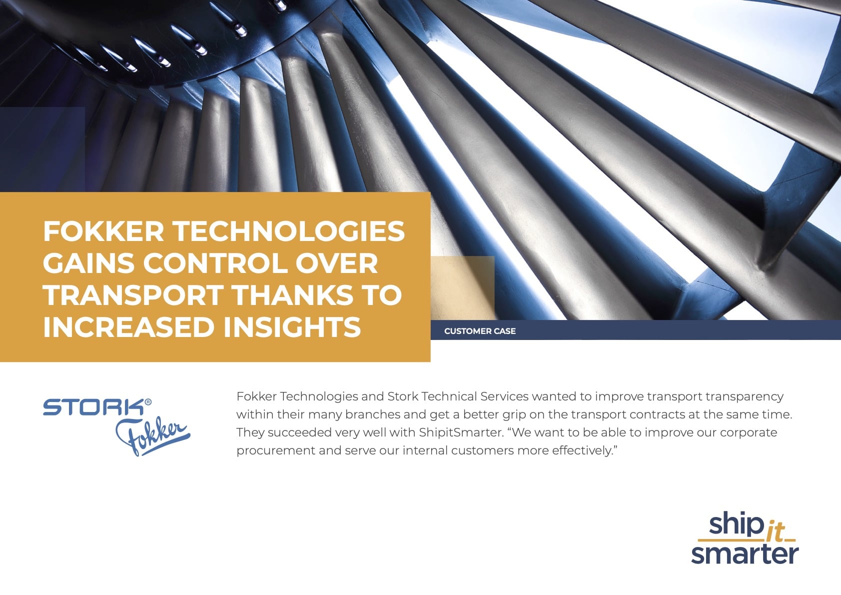Fokker Technologies and Stork Technical Services wanted to improve transport transparency within their many branches and get a better grip on the transport contracts at the same time. They succeeded very well with ShipitSmarter.